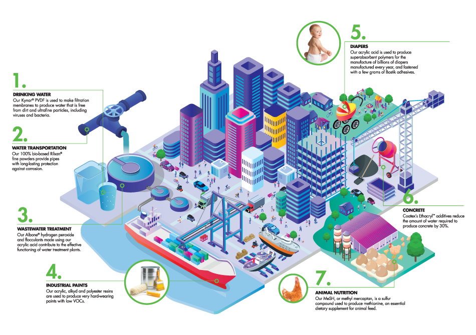 We have a growing population that is increasingly urban, with exponentially growing needs for food, long-term housing, access to drinking water and hygiene products. A large part of Arkema’s portfolio is aimed at fulfilling these essential needs.